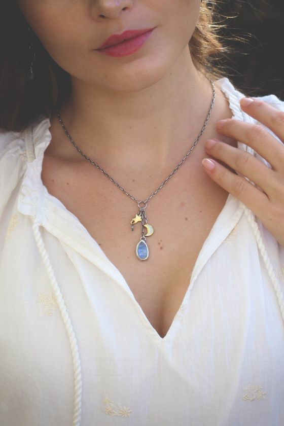 Made with our elongated bail so it can be worn with any of our handmade Storyteller chains as well as our front wearing clasp necklaces